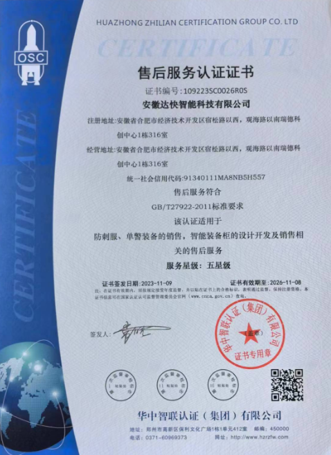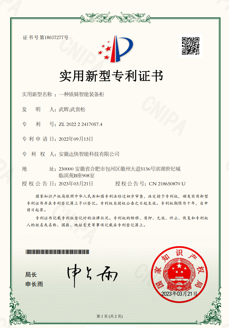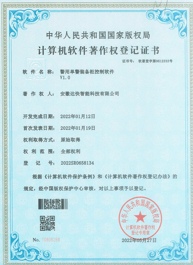 技術實力強:安徽達快智能科技有限公司擁有一支高素質、專業化的技術團隊,具有豐富的研發經驗和創新能力。公司在警用智能管理系統開發、智能裝備柜設備等領域擁有多項核心技術和專利,能夠為客戶提供具有競爭力的產品和服務。